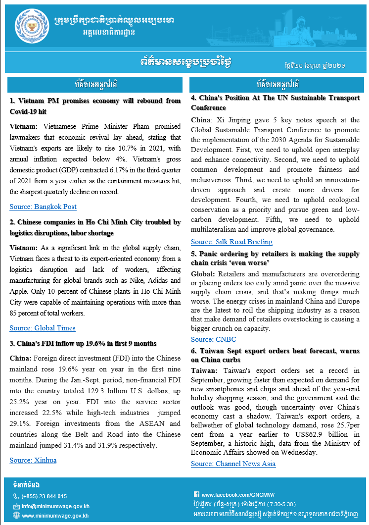 ១. Vietnam PM promises economy will rebound from Covid-19 hit