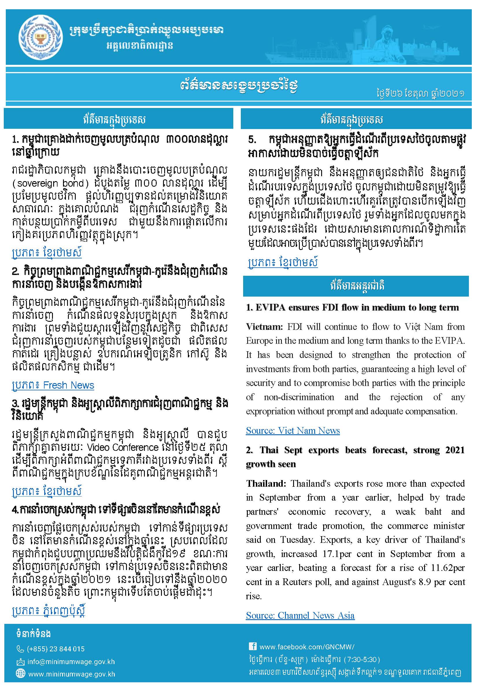 ២. កិច្ចព្រមព្រាងពាណិជ្ជកម្មសេរីកម្ពុជា-កូរ៉េនឹងជំរុញកំណើនការនាំចេញ និងបង្កើនឱកាសការងារ