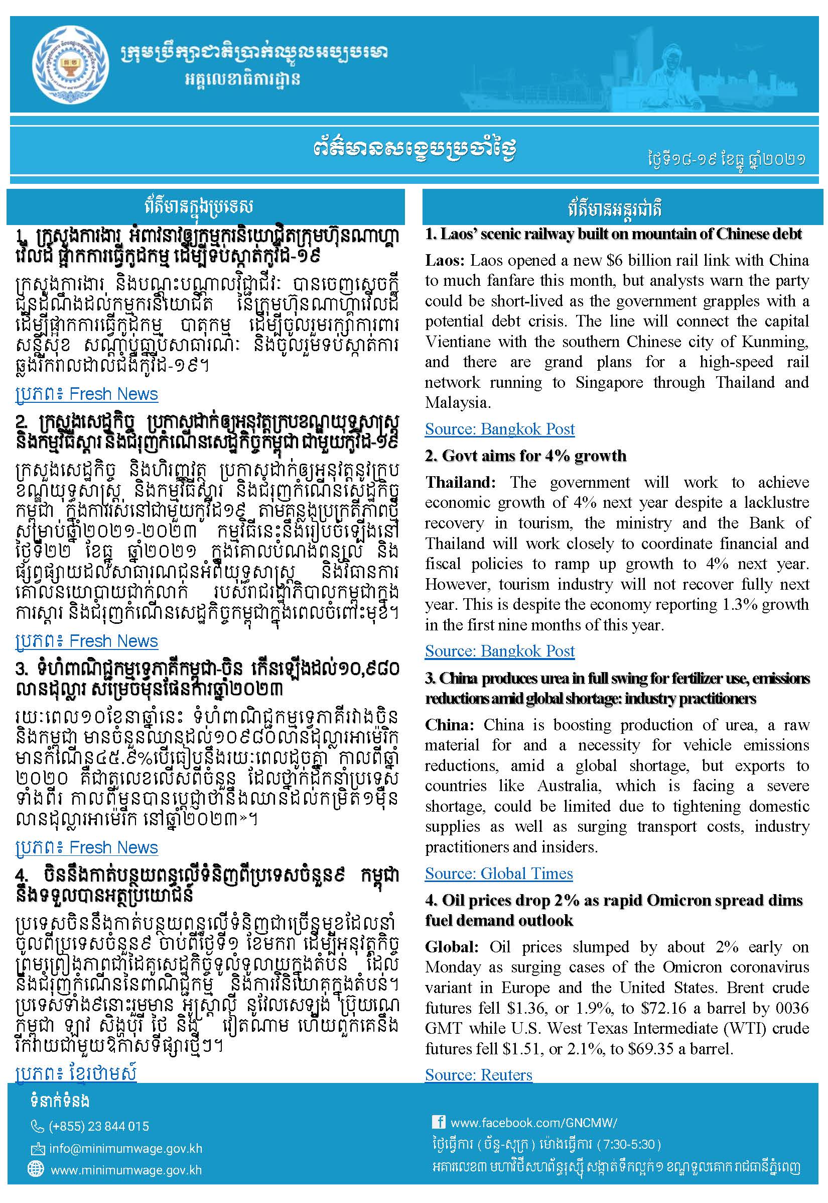 ២. ក្រសួងសេដ្ឋកិច្ច ប្រកាសដាក់ឲ្យអនុវត្តក្របខណ្ឌយុទ្ធសាស្ត្រ និងកម្មវិធីស្តារ និងជំរុញកំណើនសេដ្ឋកិច្ចកម្ពុជា ជាមួយកូវីដ-១៩