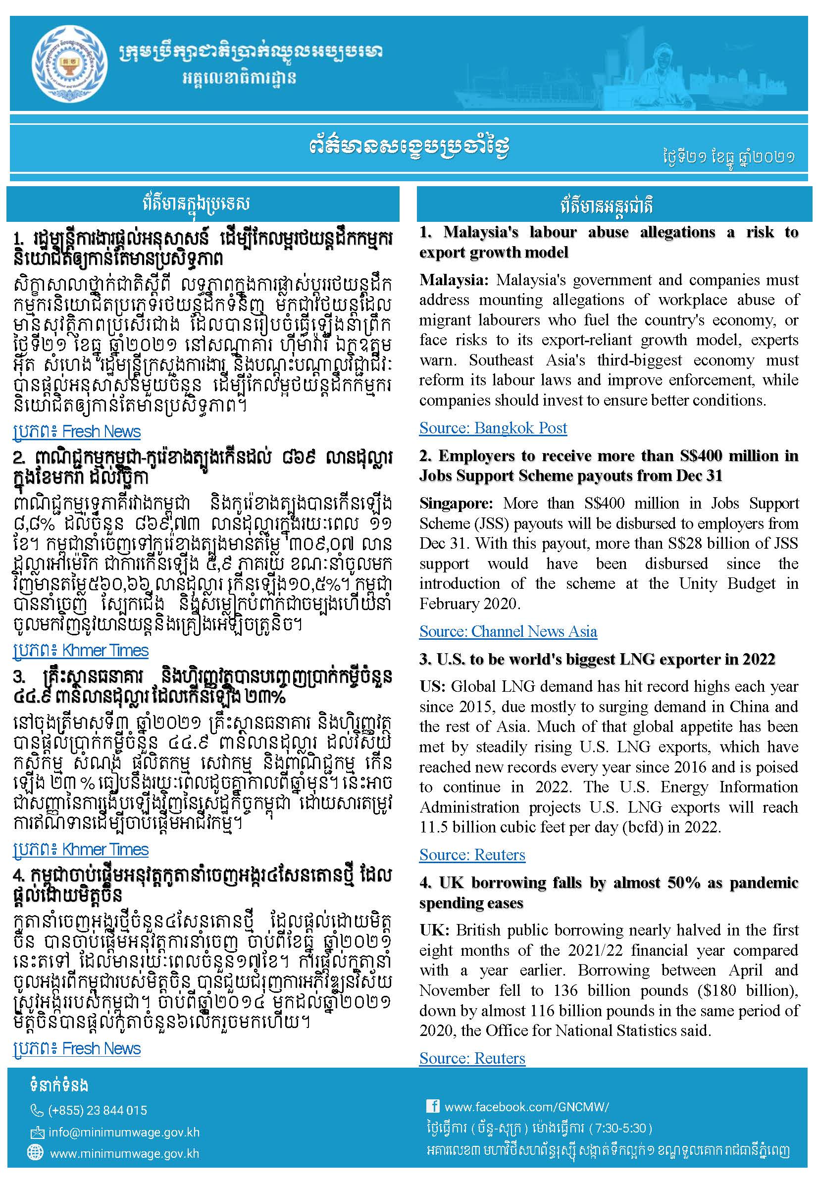 ១. រដ្ឋមន្ត្រីការងារផ្ដល់អនុសាសន៍ ដើម្បីកែលម្អរថយន្តដឹកកម្មករនិយោជិតឲ្យកាន់តែមានប្រសិទ្ធភាព