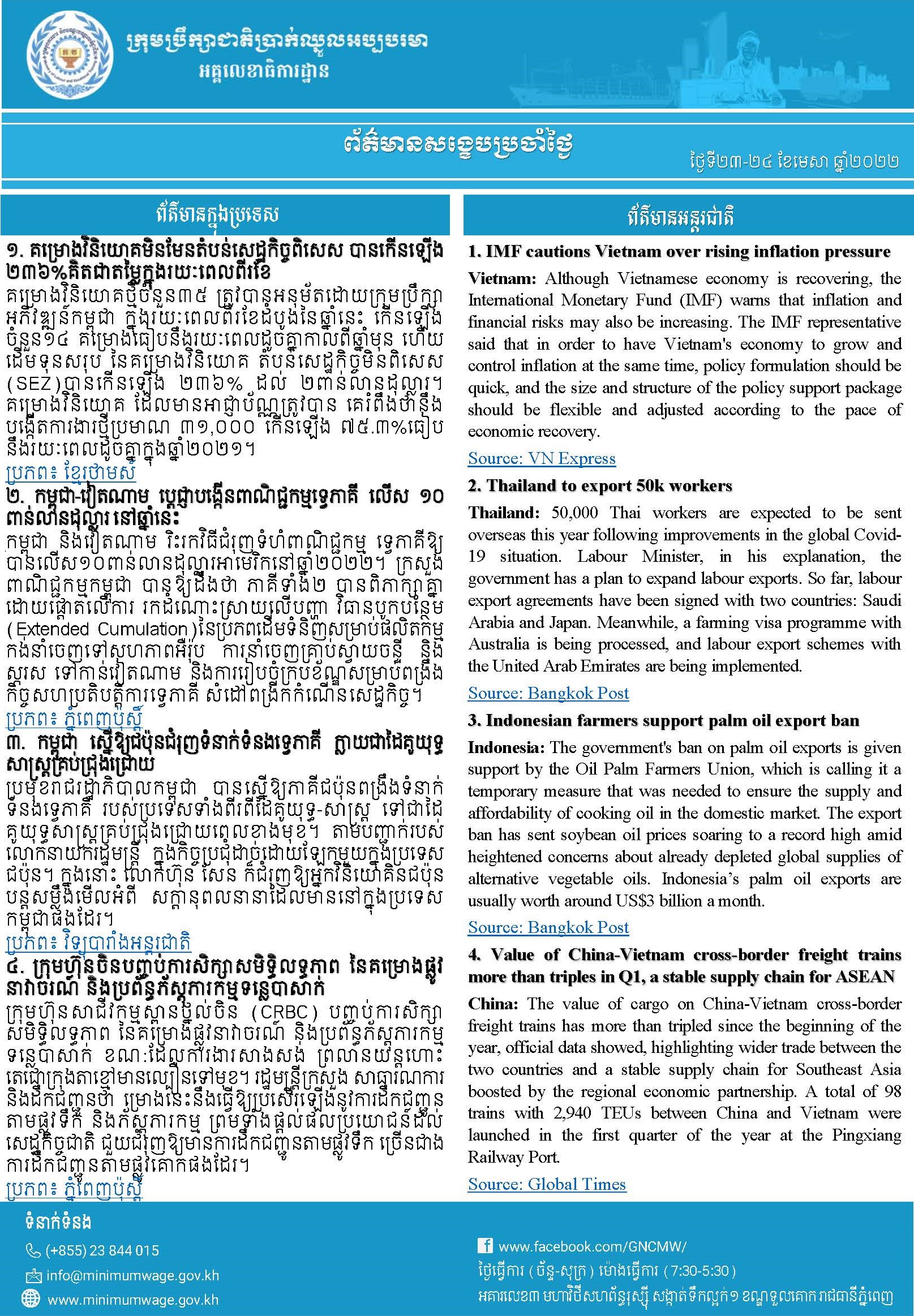 1. IMF cautions Vietnam over rising inflation pressure