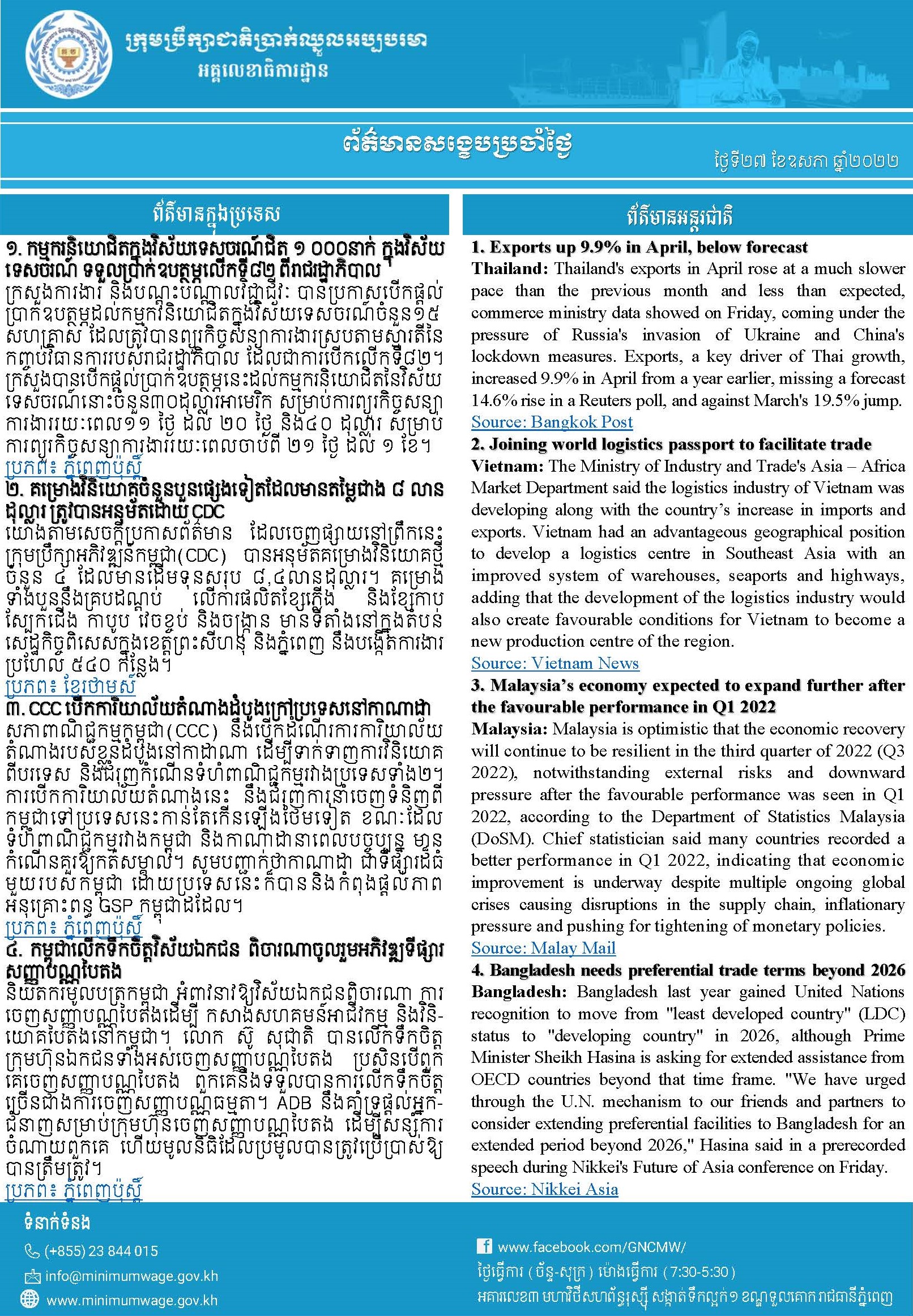 ១. កម្មករនិយោជិតក្នុងវិស័យទេសចរណ៍ជិត ១ ០០០នាក់ ក្នុងវិស័យទេសចរណ៍ ទទួលប្រាក់ឧបត្ថម្ភលើកទី៨២ ពីរាជរដ្ឋាភិបាល