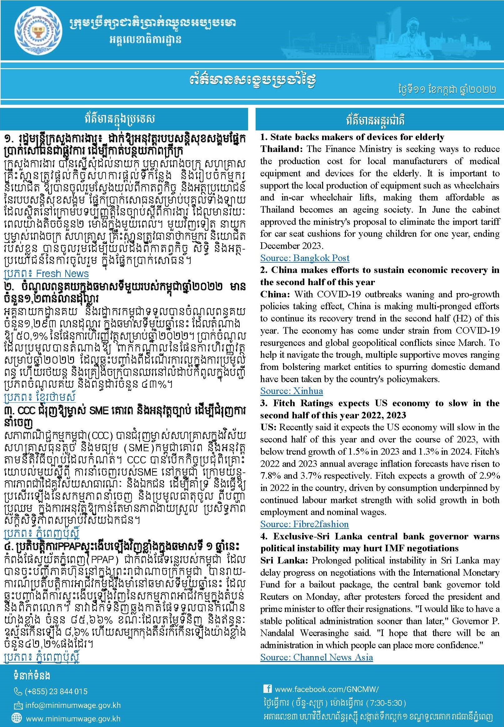 ១. រដ្ឋមន្រ្តីក្រសួងការងារ៖ ដាក់ឱ្យអនុវត្តរបបសន្តិសុខសង្គមផ្នែកប្រាក់សោធនជាផ្លូវការ ដើម្បីកាត់បន្ថយភាពក្រីក្រ