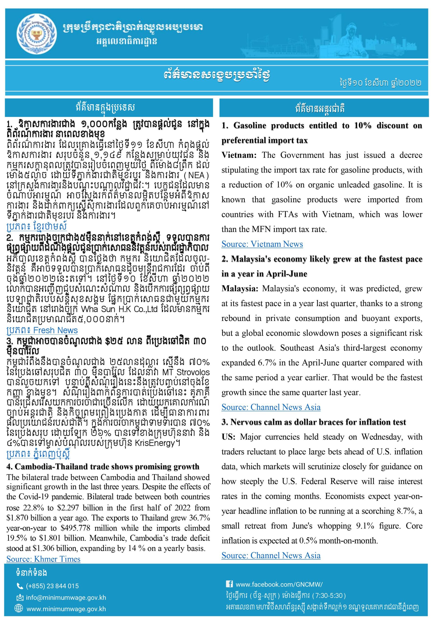 ១. ឱកាសការងារជាង ១,០០០កន្លែង ត្រូវបានផ្តល់ជូន នៅក្នុងពិព័រណ៍ការងារ នាពេលខាងមុខ