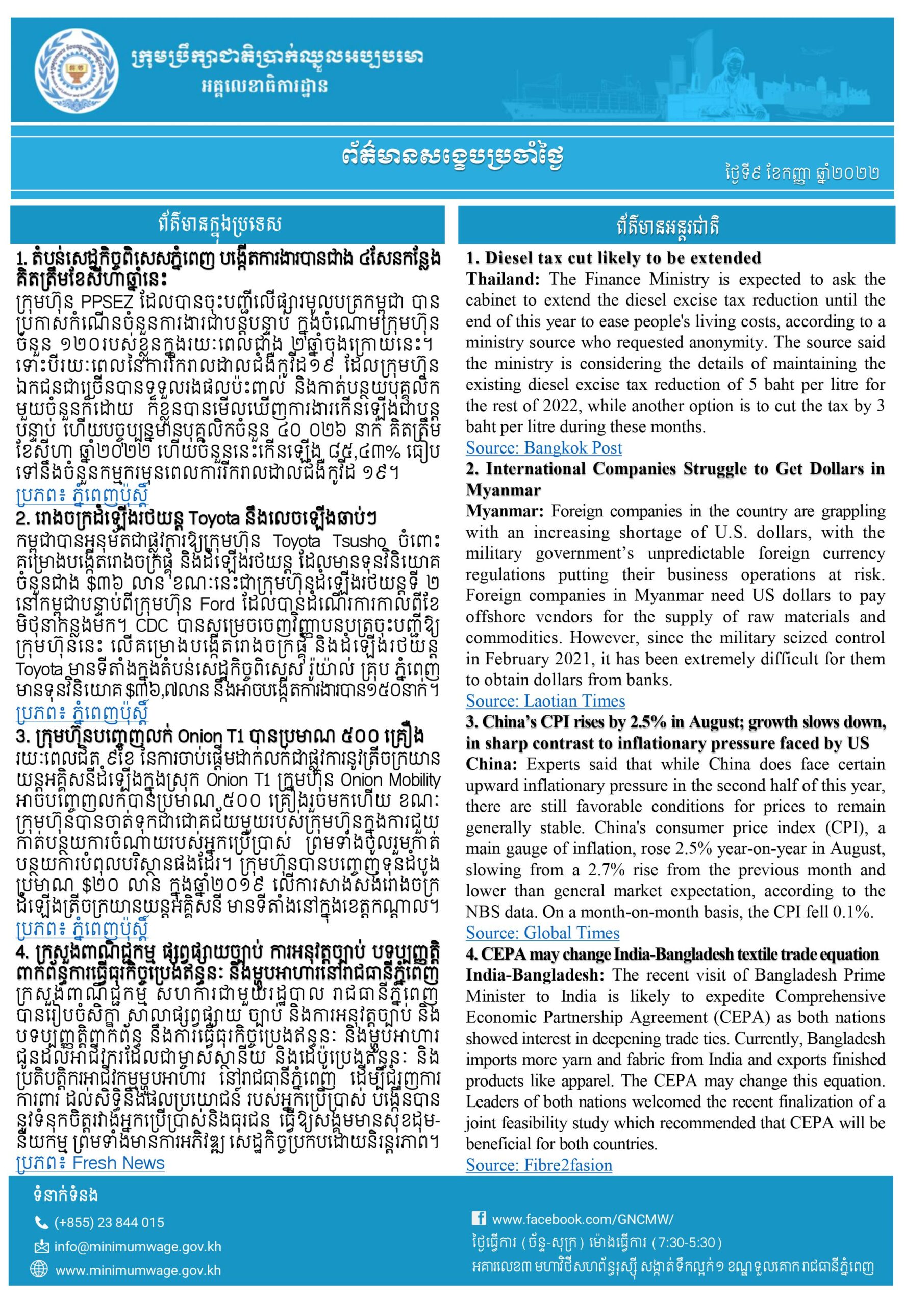 ១. តំបន់សេដ្ឋកិច្ចពិសេសភ្នំពេញ បង្កើតការងារបានជាង ៤សែនកន្លែង គិតត្រឹមខែសីហាឆ្នាំនេះ