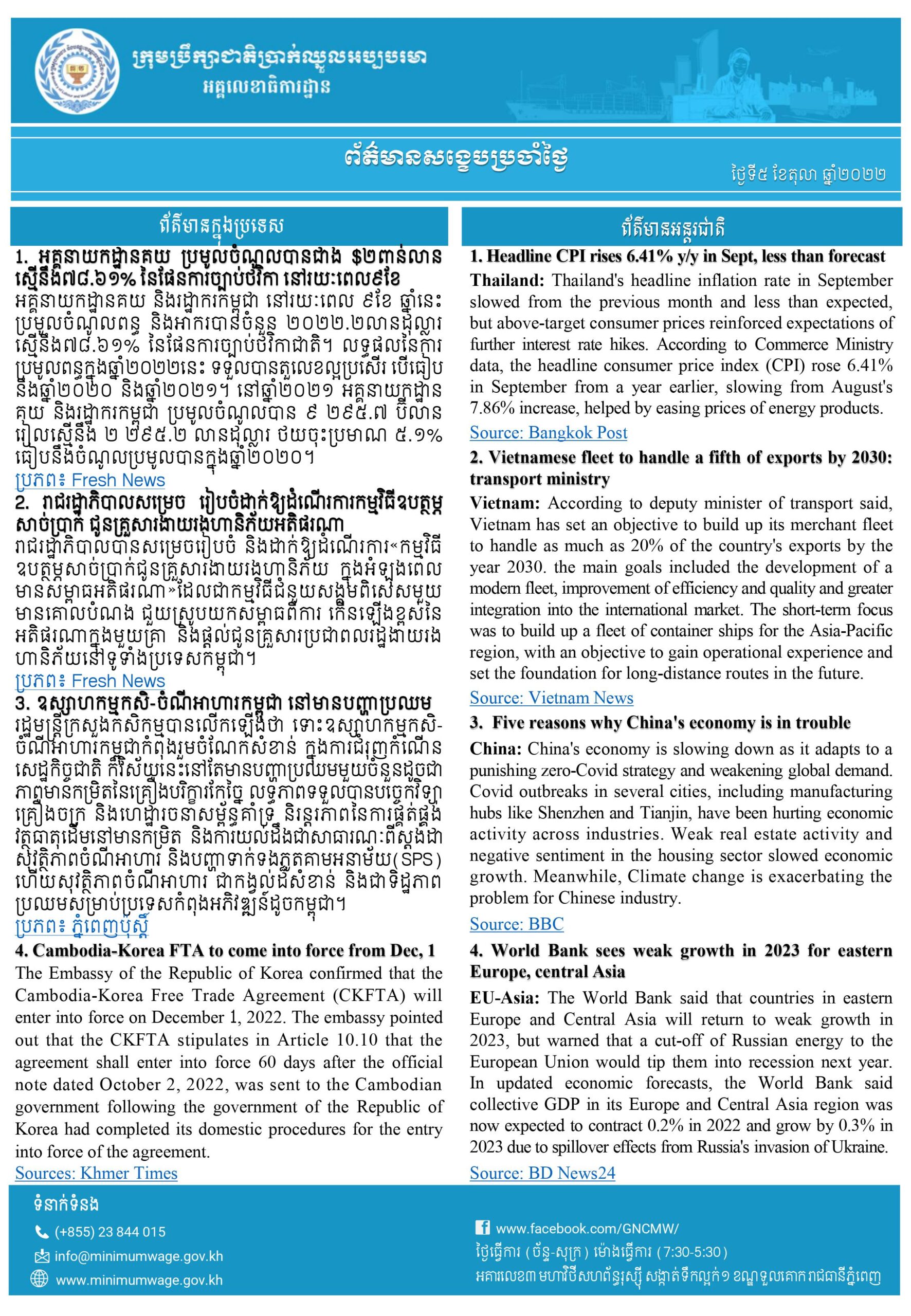 ព័ត៌មានសង្ខេបជាតិ និងអន្តរជាតិប្រចាំថ្ងៃទី២៣ ខែកុម្ភៈ ឆ្នាំ២០២២ ពី អគ្គលេខាធិការដ្ឋានក្រុមប្រឹក្សាជាតិប្រាក់ឈ្នួលអប្បបរមា