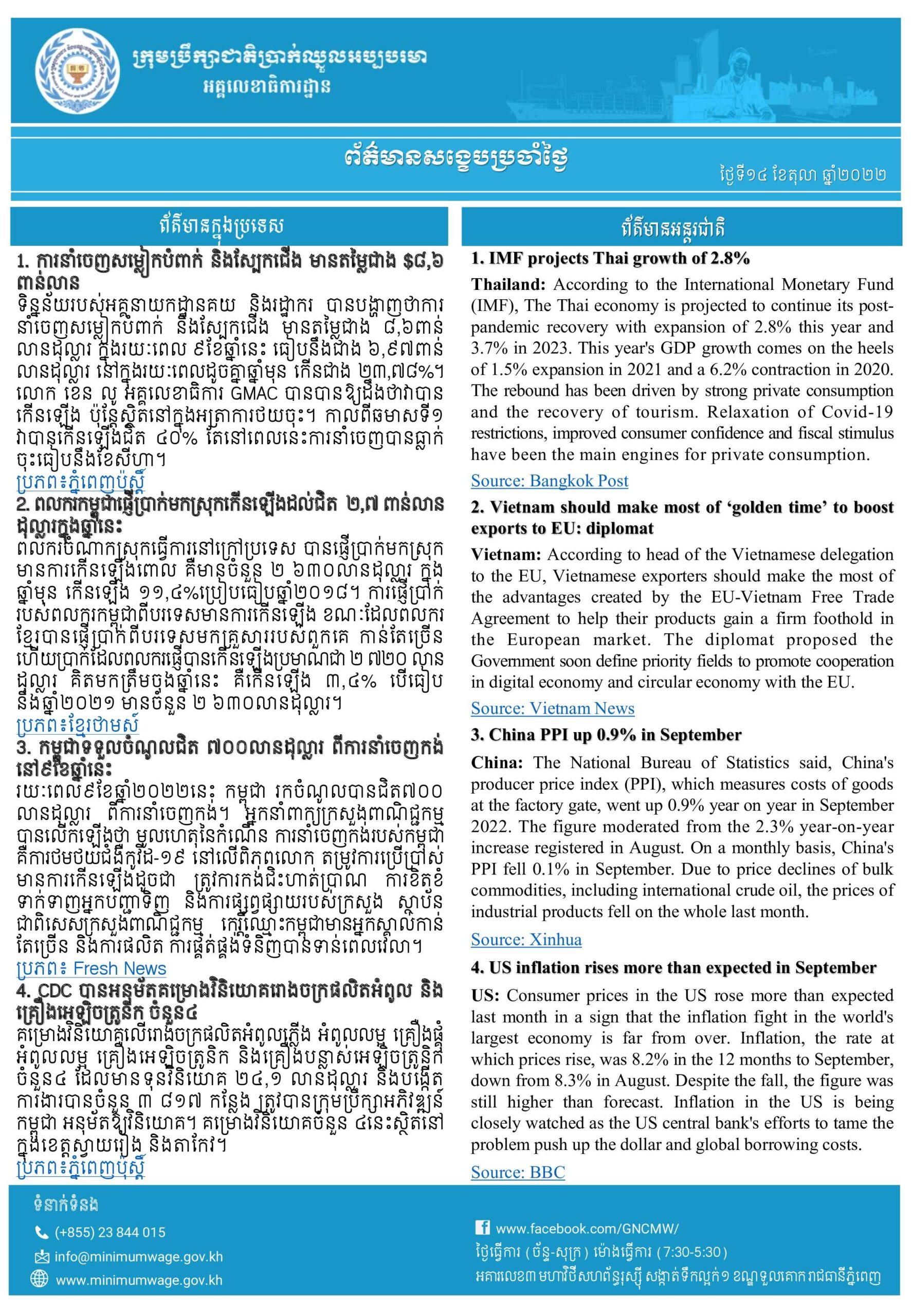 ៣. កម្ពុជាទទួលចំណូលជិត ៧០០លានដុល្លារ ពីការនាំចេញកង់ នៅ៩ខែឆ្នាំនេះ