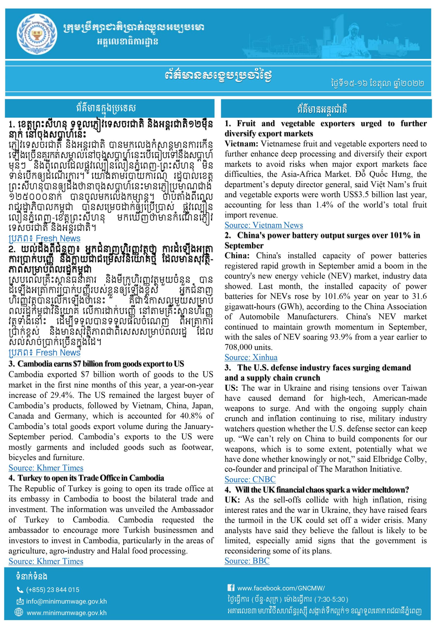 ៣. Cambodia earns $7 billion from goods export to US
