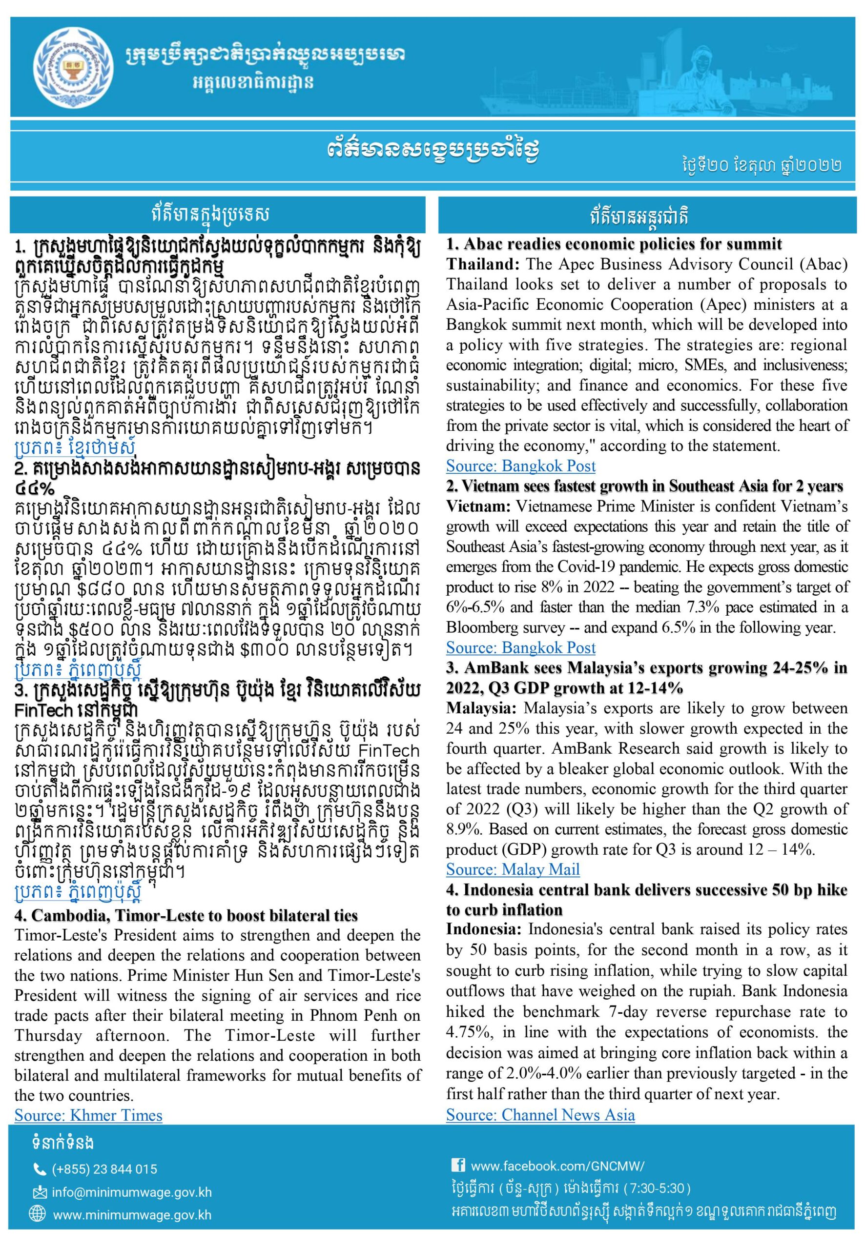 ៣. ក្រសួងសេដ្ឋកិច្ច ស្នើឱ្យក្រុមហ៊ុន ប៊ូយ៉ុង ខ្មែរ វិនិយោគលើវិស័យ FinTech នៅកម្ពុជា