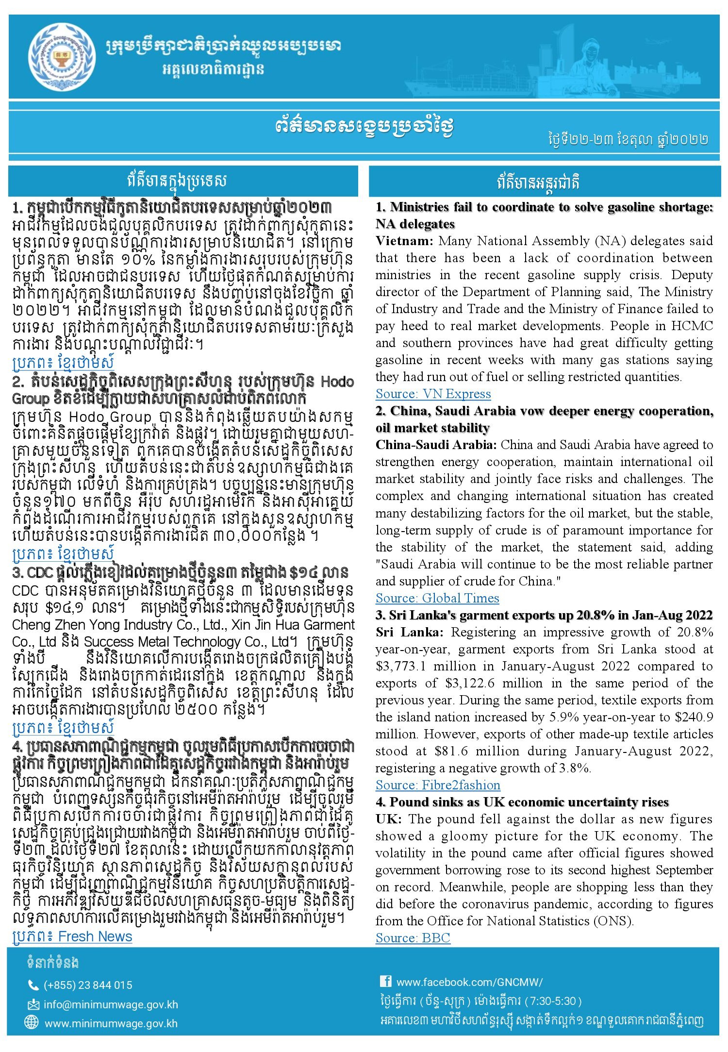 ព័ត៌មានសង្ខេបជាតិ និងអន្តរជាតិប្រចាំថ្ងៃទី២២-២៣ ខែតុលា ឆ្នាំ២០២២