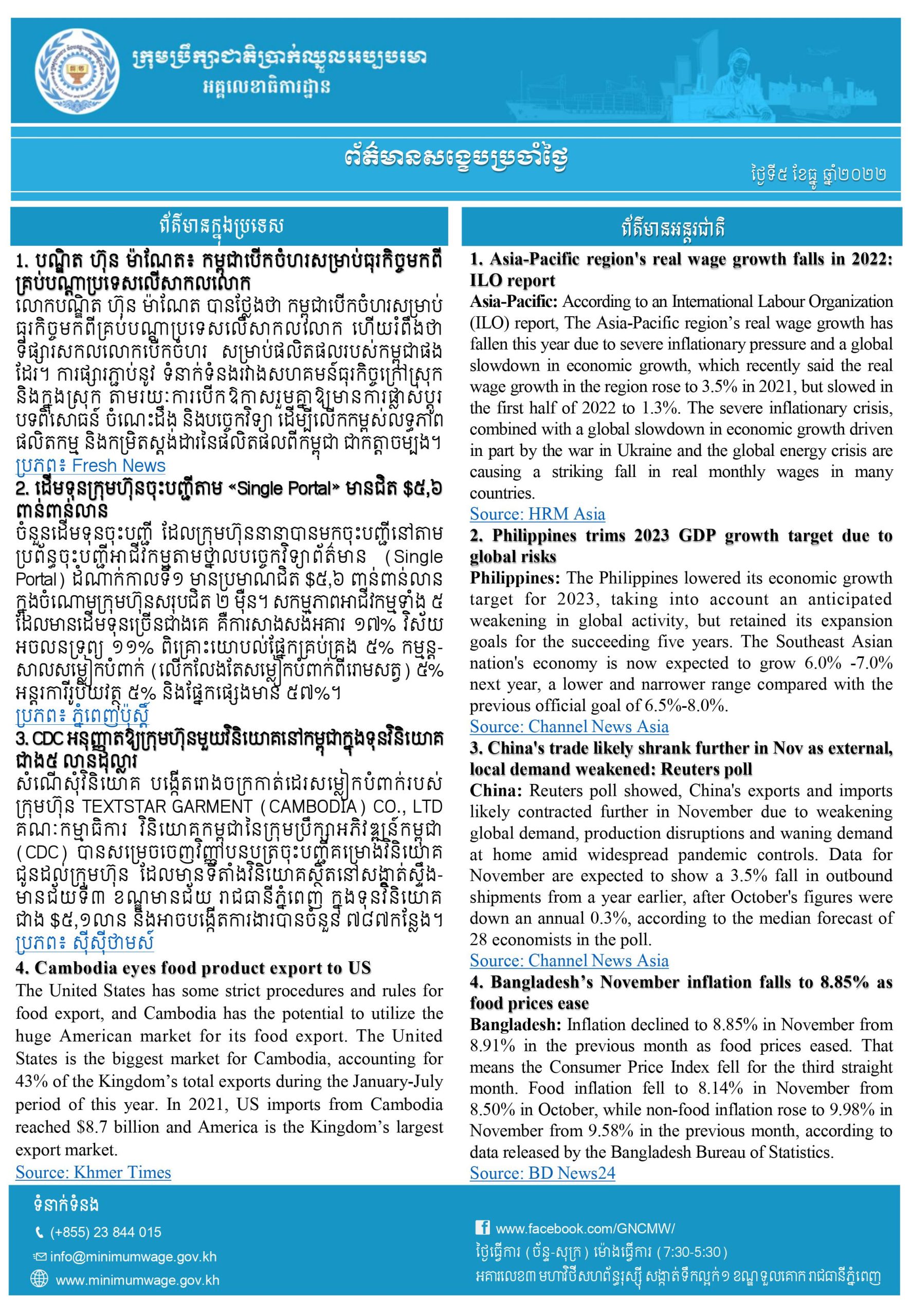 1. Asia-Pacific region’s real wage growth falls in 2022: ILO report