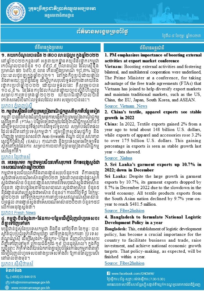 ២. កម្ពុជាសម្លឹងមើលកិច្ចព្រមព្រៀងពាណិជ្ជកម្មសេរីទ្វេភាគីបន្ថែមទៀត